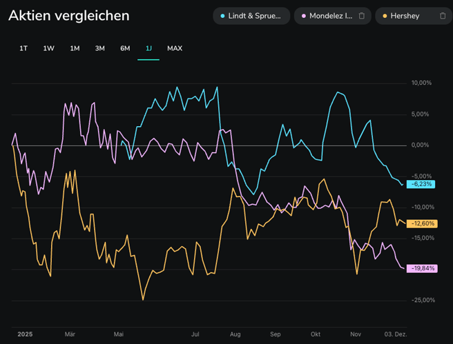 Gestiegene Kakaopreise und zu starke Preiserhöhungen während Corona. Durch diese Kombo waren die letzten Jahre bei den meisten Konsumgütergiganten im Lebensmittelbereich alles andere als einfach. Aber wie stehen sie heute da?